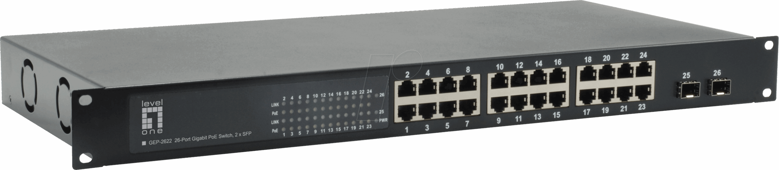LevelOne FE PoE Switch 26-Port 19″ 380W 1Gbps (FGP-2602W380)